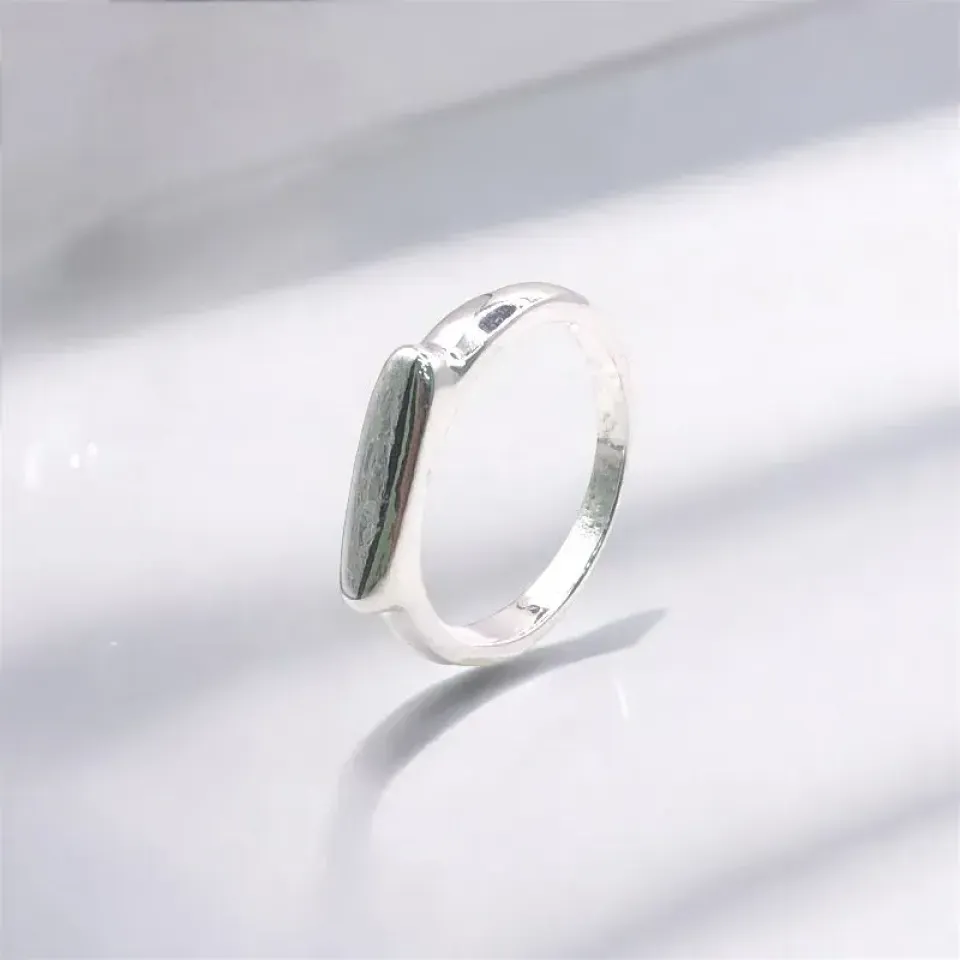 O anel liso chapado na frente, com Banho em Prata, é uma peça elegante e marcante, ideal para quem aprecia acessórios com design minimalista e imponente.