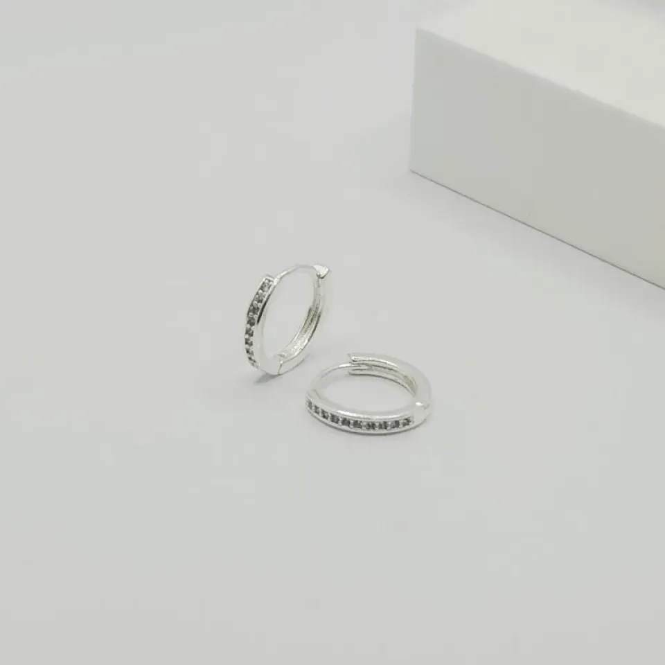 O Brinco argolinha articulado fina em zircônia cristal com banho de prata é uma peça delicada e sofisticada, ideal para quem busca um acessório elegante e moderno.