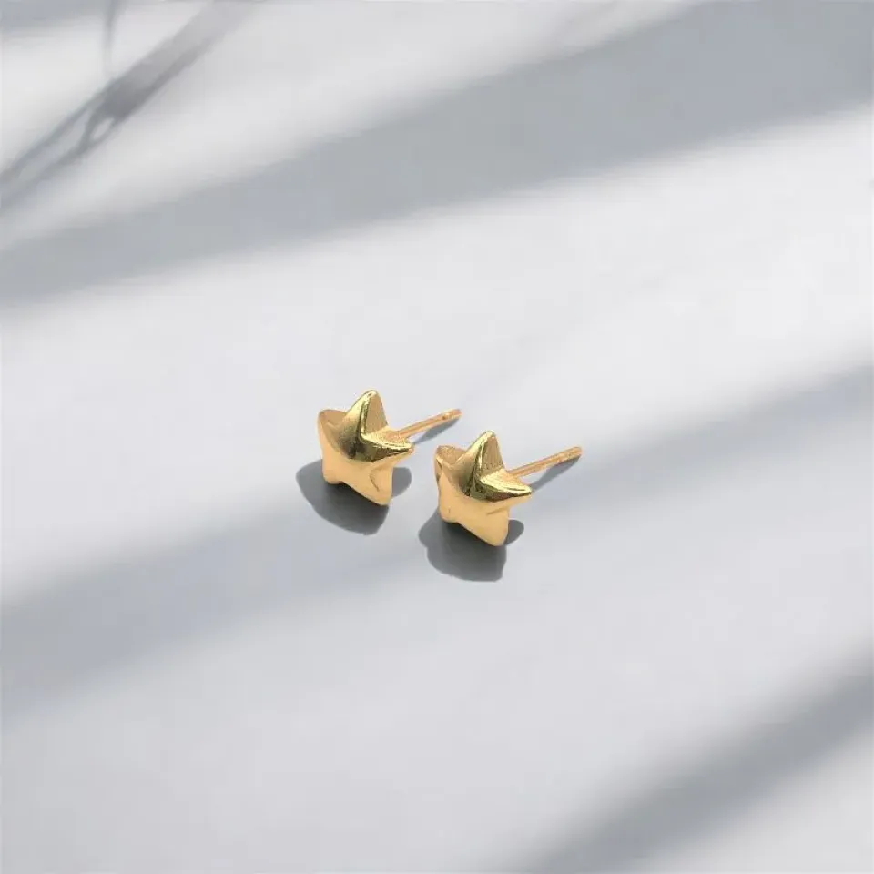 O brinco estrela liso tamanho P, com Banho em Ouro 18K, é uma peça delicada e cheia de estilo.