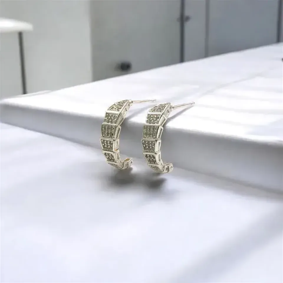 O Brinco Meia Argola em Relevo Cravejado com Banho em Prata é uma peça moderna e sofisticada, ideal para quem deseja um acessório cheio de brilho e elegância.