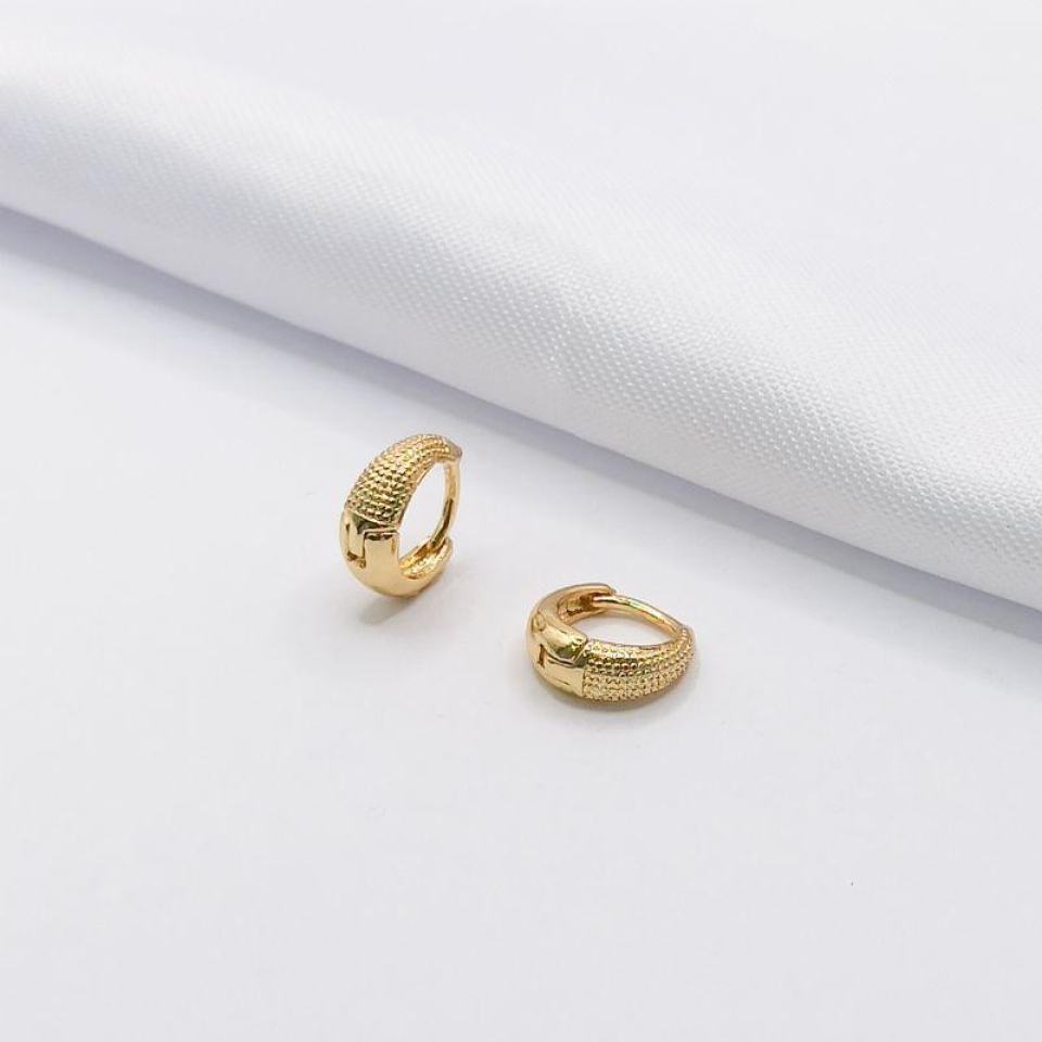 O Brinco Meia Argola em Relevo Cravejado com Banho em Ouro 18K é uma peça moderna e sofisticada, ideal para quem deseja um acessório cheio de brilho e elegância.