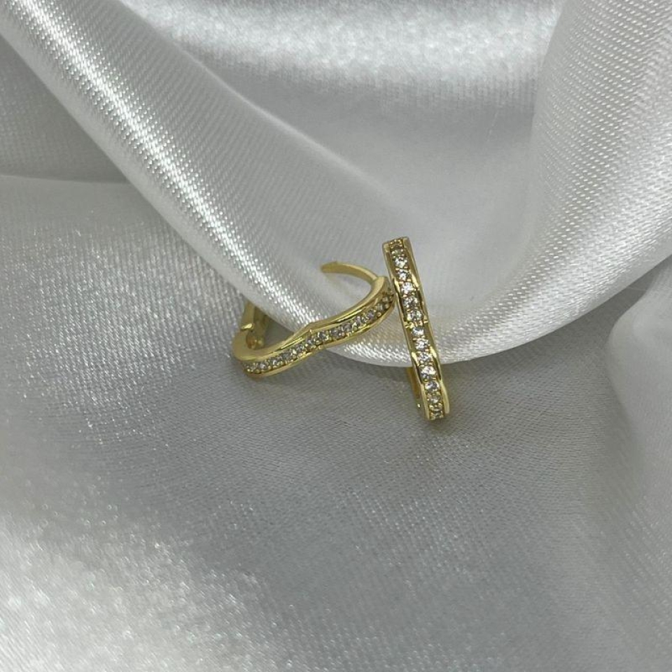 O design da meia argola em relevo, combinada com o cravejado de zircônias brilhantes, cria um efeito luminoso e detalhado, adicionando sofisticação ao visual.