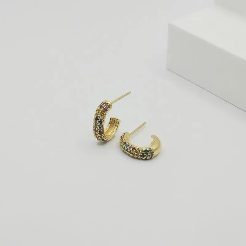 O brinco meia argola em zircônia colorida com Banho em Ouro 18K é uma peça moderna e sofisticada, ideal para quem deseja adicionar um toque vibrante e elegante ao visual. As zircônias coloridas refletem a luz de maneira encantadora, criando um efeito deslumbrante e alegre.