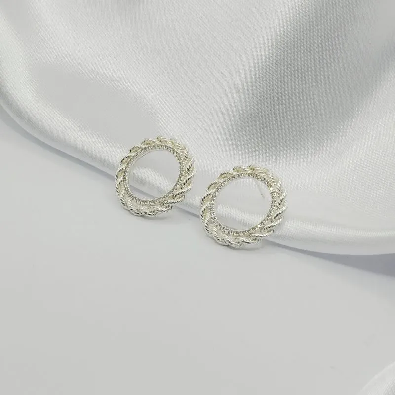 O brinco redondo trançado e vazado, com Banho em Prata, tamanho P, é uma peça delicada e elegante, perfeita para quem busca um acessório discreto e sofisticado.