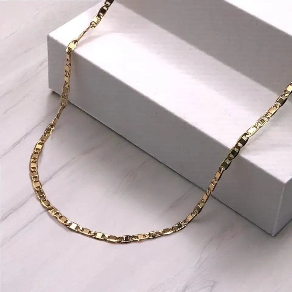 O design do elo piastrine, com seus elos finos e estruturados, cria um visual delicado e contemporâneo, ideal para complementar diferentes tipos de looks.