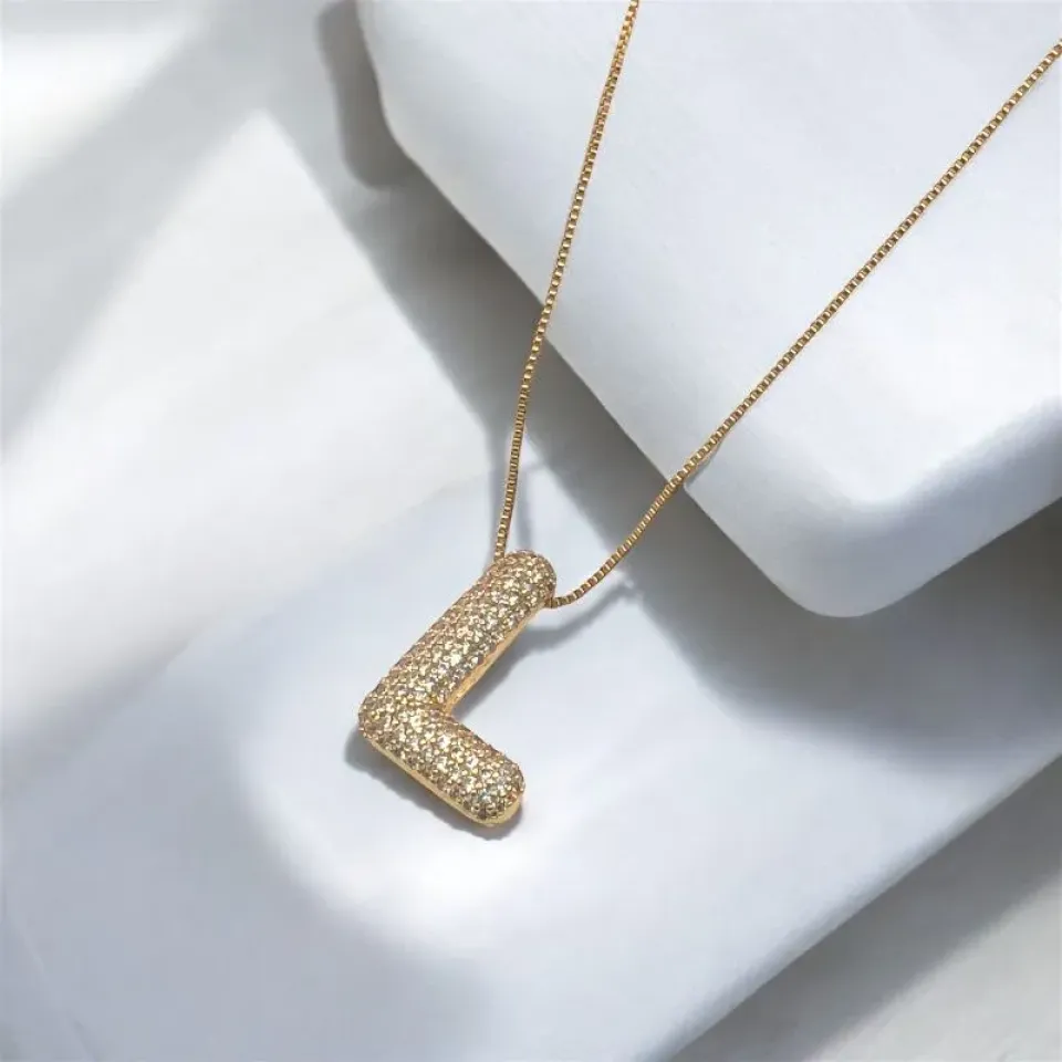 O pingente em formato da letra L é cuidadosamente cravejado com pedras brilhantes, adicionando um toque de sofisticação e charme à peça. A corrente, com design fino e clássico, proporciona um caimento gracioso e confortável ao redor do pescoço.