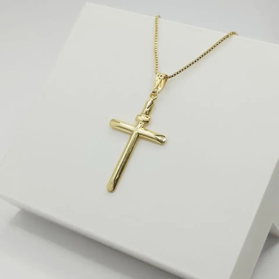 O colar veneziana com pingente cruz lisa com Banho em Ouro 18K é uma peça clássica e cheia de simbolismo, ideal para quem busca um acessório que transmita fé e elegância. O pingente cruz lisa, com seu design simples e sofisticado, representa proteção e espiritualidade, sendo um amuleto poderoso para o dia a dia.