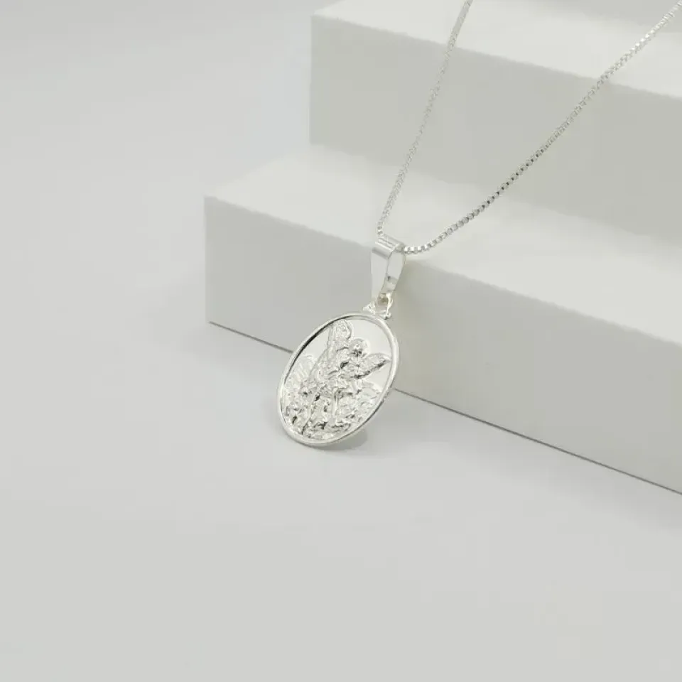 O Banho de Prata confere à peça um acabamento refinado e durável, garantindo resistência e brilho ao longo do tempo. Ideal para quem busca um colar que combine devoção e estilo, esta peça é perfeita tanto para o uso diário quanto para ocasiões especiais, trazendo um toque de serenidade e proteção ao seu visual.