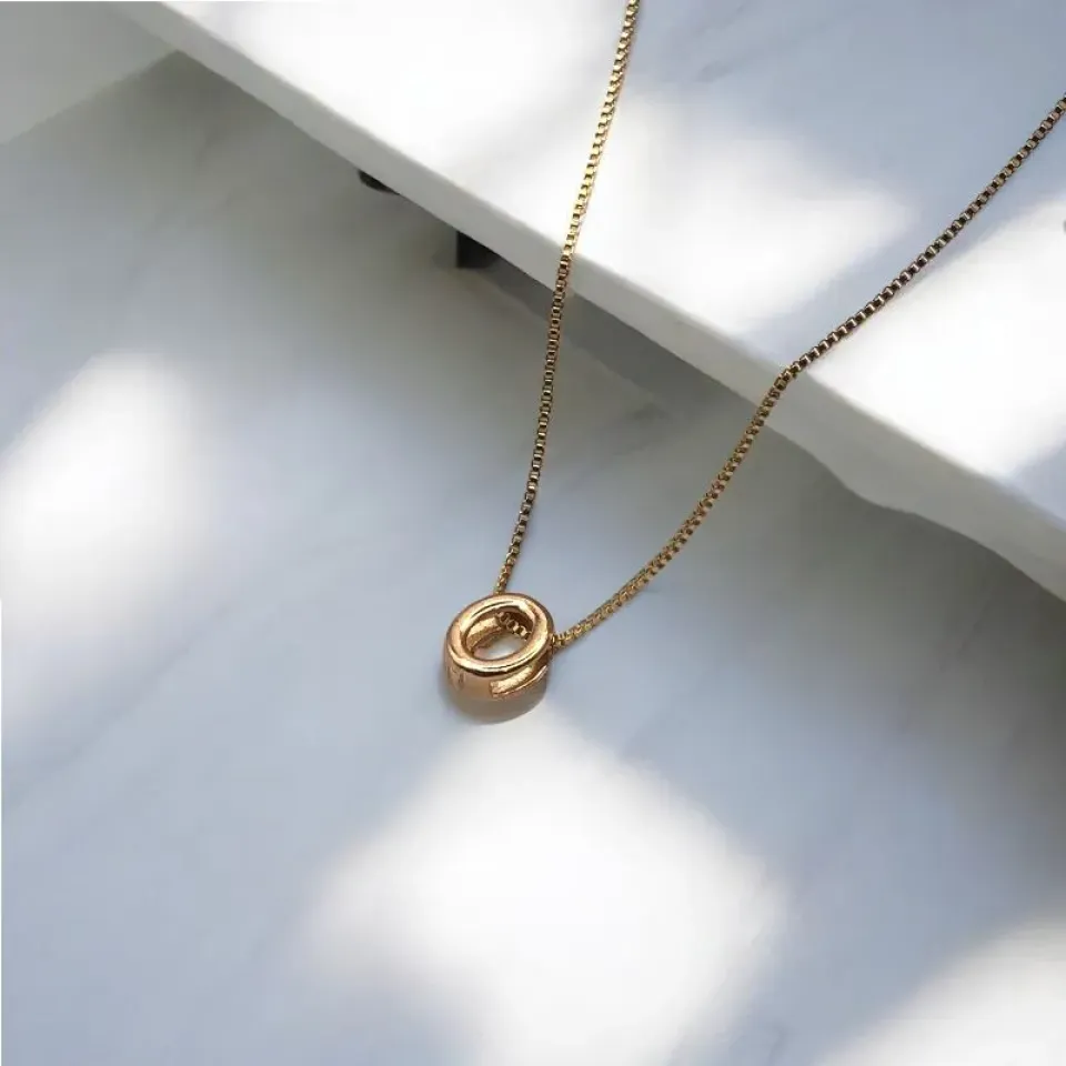 O pingente em formato da letra O, com design liso e minimalista, traz um toque de exclusividade e versatilidade, ideal para combinar com diferentes estilos.