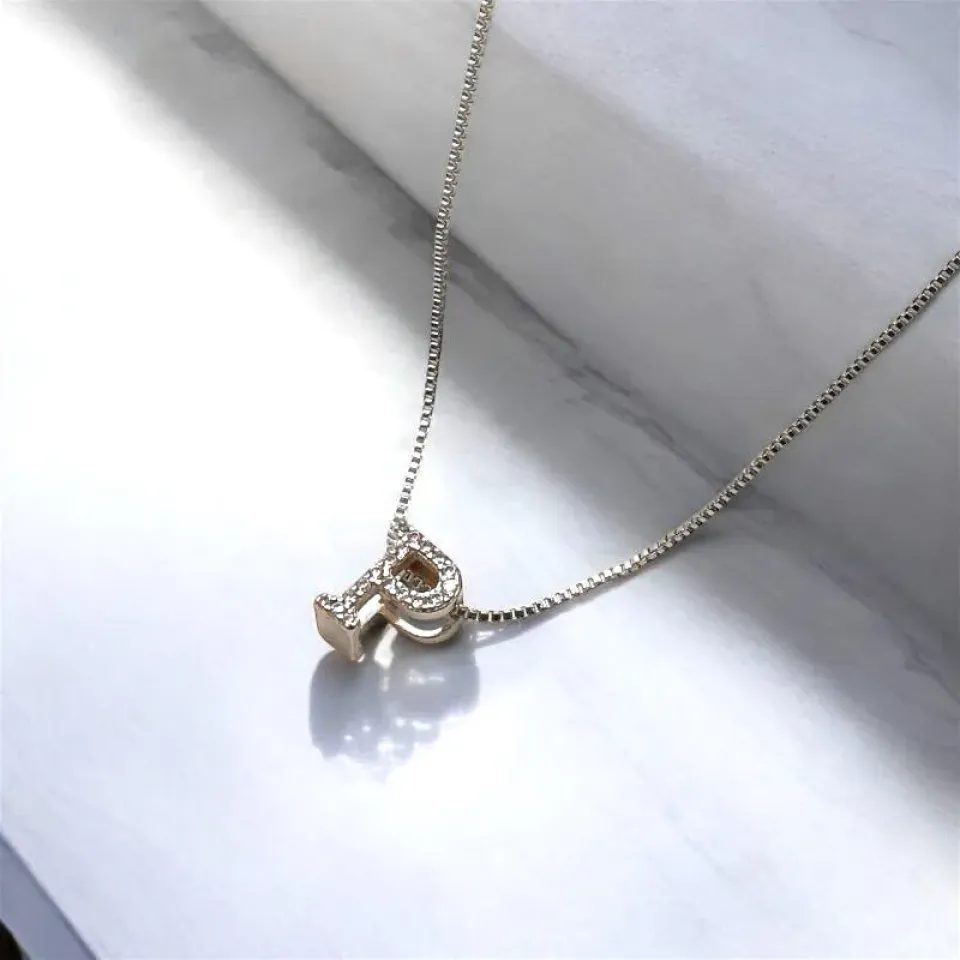 O pingente em forma de letra "P", cravejado com pedras brilhantes, adiciona um toque especial de brilho e sofisticação, tornando a peça única e marcante.