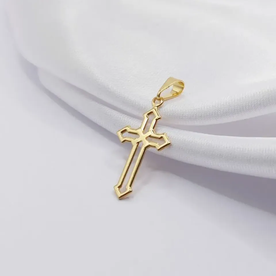 O Pingente Cruz Lisa e Vazada com Banho em Ouro 18K é uma peça elegante e cheia de significado, perfeita para quem deseja carregar um símbolo de fé com sofisticação.