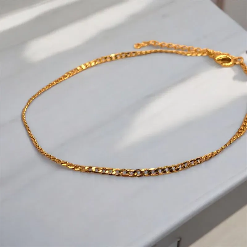 O Banho em Ouro 18K garante um acabamento polido e duradouro, proporcionando brilho intenso e resistência. Versátil, essa tornozeleira pode ser usada sozinha para um visual minimalista ou combinada com outras peças para um look mais elaborado.